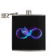Symbole d'infinité violet brillant avec volant, colibri bleu lumineux sur arrière - plan noir. Fluorescent, fluo, fluos.