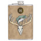 Basse de saut Grande Rack Cerf Crâne Boire Flacon. Changez la lettre du monogramme et personnalisez-la ! C'est le cadeau parfait pour le chasseur et le pêcheur ! Cette conception de crâne de cerf de sonnette a été dessinée à la main et l'eau colorée par ©Tina Hesskew de Fishing Hunting Life.