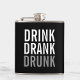 Boire Boire Boire ivre | Black Chic Funny Flask avec l'expression "Drink Drank Drunk" en gras style de police de texte.