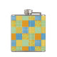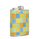 Joli flacon de hanche enveloppé de vinyle, avec un faux motif d'estampilles de jonquille, avec Pois et Check Ginghams en vert, orange, jaune et bleu et blanc. Une partie de la collection Posh & Painterly 'Daffy-down-Dillies'.