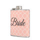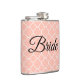 Avec un beau arrière - plan rose, "Bride" est écrit sur le devant en joli caractère noir cursif. Achetez votre fiole de mariée aujourd'hui ! Design : LaBoutiqueDeiColori : www.laboutiquedeicolori.com
