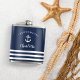 Sirotez, sip, hourra ! Célébrez vos demoiselles d'honneur avec ces adorables flacons à thème nautique qui peuvent être customisés avec le nom de chaque demoiselle d'honneur. Le design bleu et blanc de la marine présente une illustration de l'ancre du navire avec un "compagnon" courbé au-dessus du sommet et le nom de votre servante d'honneur en-dessous du script de brosse moderne. Trois bandes nautiques le long du fond complètent le design.