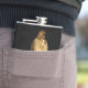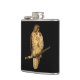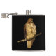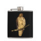 Cette fiole de hanche présente une femelle Buse à queue rousse (Buteo jamaicensis). Un des oiseaux de proie les plus répandus et les plus fréquemment observés en Amérique du Nord, ce chasseur féroce est perché sur une branche haute dans quelques épinettes à feuillage persistant, attendant patiemment l'apparition d'un repas. Sa tête est brune et la poitrine blanche crémeuse a des taches brunes.
