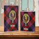 Clan Brown badge crête entouré d'une sangle et boucle sur tartan. Texte personnalisé.