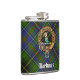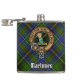 Clan MacInnes crête badge entouré d'une sangle et boucle sur tartan. Texte personnalisé.