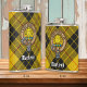 Clan MacLeod de l'insigne crête de Lewis entouré d'une sangle et boucle sur l'arrière - plan tartan. Texte personnalisé.