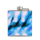 Un service de mariage / memento flacon avec le nom de la mariée et des mariées et date mariage placé dans une couronne en forme de coeur sur un arrière - plan cool avec un design d'aquarelle cosmique. Le bleu, le rose et le violet mélangent pour créer un motif abstrait en marbre.