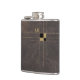 Un scan numérique de véritable cuir de vache a été utilisé pour la création de ce design. Une fausse couture décorative est placée stratégiquement pour former un motif géométrique qui encadre votre monogramme à trois lettres. Le monogramme est imprimé en typographie dorée. Superbe flasque à emporter sur le terrain de golf. Cette flasque fera un excellent cadeau pour votre témoin et/ou garçons d'honneur. Ce design élégant convient à l'homme au goût raffiné.