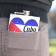 Découpe en forme de coeur du drapeau national cubain avec superposition de texte de style rétro