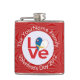Flacon de hanche montrant le DRAPEAU D'AMOUR Azoréen. Le mot LOVE est représenté en lettres rouges à l'intérieur d'un cercle fractal blanc de carrés grossiers. Le cercle est assis sur un arrière - plan fractal rouge de carrés grossiers. Parfait cadeau de la Saint Valentin pour lui, mais peut être customisé pour n'importe quelle occasion. Profitez du drapeau des Açores.