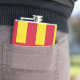Flacon enveloppé de vinyle avec design avec un drapeau du comté historique de Northumberland, en Angleterre, Grande-Bretagne; drapeau rouge et jaune basé sur la bannière St. Oswald