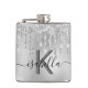 Un fond d'aspect argenté avec des gouttes de paillettes factices, un effet de peinture qui coule. Personnalisez et ajoutez un nom et une lettre de monogramme. Le nom est écrit en noir avec un style d'écriture manuscrite moderne, gras et élégant avec des fioritures. Pour conserver les fioritures, supprimez simplement le nom de l'exemple, laissez les espaces ou les émojis devant et après le nom.