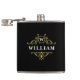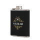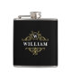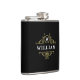 Ce flacon élégant présente un design classique noir et or avec un élégant emblème d'or et un monogramme personnalisable. Modifier le nom et l’initiale pour créer un cadeau unique pour les groomsmen, la fête des pères ou un anniversaire.