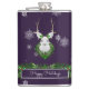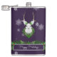 Profitez de vos boissons alcoolisées préférées pendant la saison des fêtes avec un flacon au vinyle de renne violet enveloppé. Le design des flacons comprend un renne festif portant une couronne de Noël ornée de baies sèches et de flocons de neige en chute ainsi qu'une boîte de salutation décorée de guirlandes de vacances. Autres cadeaux et objets de vacances disponibles avec ce design aussi.