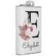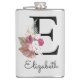 Flasque initiale rose moderne boho, cadeau idéal pour une soirée d'enterrement de vie de jeune fille ou autre célébration féminine amusante. Personnalisé avec le monogramme de la lettre E et un nom.