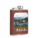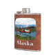 Un pilote de brousse se tient près de son hydravion DHC-2 Beaver de Havilland Canada sur la rive d'un lac à l'extrême nord; les montagnes et les arbres sont au loin. Le texte "Alaska" apparaît également. Cette image provient, en partie, d'une photo du US Fish and Wildlife Service.