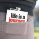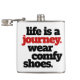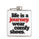 Ajoutez une touche de fantaisie poétique à votre boisson préférée avec ce flacon, qui présente le dicton philosophique "La vie est un voyage" ... et puis suivez avec une suggestion pratique pour "Porter des chaussures confortables". Conception et copie © W.H. Sim. Tous droits réservés. Voir plus sur zazzle.com/wordsofwhimsy