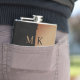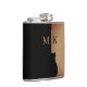 Flasque en bois de couleur bronzée et silhouette de guitare noire. Personnalisez le nom et l'initiale du monogramme. Cadeau idéal pour les amateurs de musique.