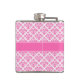Flasques Hot Pink 2 Wht Damask #3 Hot Pink Nom Monogram