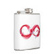 Infinity symbole of continuous stream of red pouring into glass glass glass on white background.