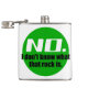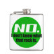 Ce flacon de hanche géologique est orné d'un logo vert avec le texte "Non, je ne sais pas ce qu'est ce rocher." Pour ceux qui reçoivent trop de demandes de nom de roches mystérieuses.