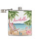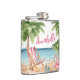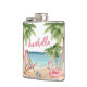 Flasque avec un nom de fille mignonne et tendance pour une ambiance tropicale de plage. Une petite flasque adorable pour vos aventures d'enterrement de vie de jeune fille ou simplement pour un événement amusant. Un thème de plage à l'aquarelle avec des nuances de rose et de sarcelle, créant l'ambiance pour une escapade à la plage avec la mariée et ses meilleures amies. Des voyages en Floride, en Californie, ou même quelque chose de plus international comme le Mexique, Hawaï ou les Bahamas, ce week-end entre filles va être inoubliable ! Chaise de plage rose et blanche, parasol et même un flotteur flamant rose pour un peu de plaisir supplémentaire. Des palmiers qui se balancent, des coquillages à collectionner - c'est tout simplement l'ambiance décontractée d'une plage tropicale. Avec des polices modernes qui ajout
