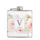 Elégante aquarelle rose vif, fleurs bordeaux et blanches et verdure de jardin délicate avec la lettre "V" ornée en ardoise gris, fiole monogramme. Flask dispose d'une ligne de texte modèle unique à personnaliser avec le nom.