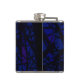 Cette fiole de hip d'art contemporain présente une interprétation abstraite de la lune la nuit à travers les branches d'un arbre, Les couleurs brillantes du spectre blanc, jaune, orange, rouge, marron, rose, pourpre, magenta, bleu et noir donnent l'illusion d'un motif de vitraux moderne.