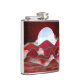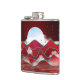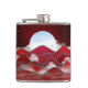 aménagement paysager Abstrait dans différentes nuances de rouge avec une lune, des collines, des arbres, des nuages et des oiseaux.