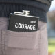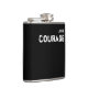 Le courage liquide est écrit dans une police grunge cassée des textes dans le blanc sur un arrière - plan noir. Alcool drôle, buvant, bourbon, écossais, thème. Gardez comme est, ou customisez et changez ou supprimez le liquide de mot au-dessus de lui selon la personnalité du buveur ou customisez n'importe quel texte. Une conception d'alcool d'amusement ou d'heure heureuse avec un peu pré de frousse câlinent pour le marié de mariage, ou n'importe quel ami.