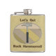 Ce flacon de hanche en géologie cool présente l'expression "Let's Get Rock Hammered !" avec un logo représentant un dessin animé d'un marteau de pierre sur un arrière - plan de non-conformité angulaire. La fiole elle-même est brune, avec un motif de marteau rocheux à répétition, brun et léger.