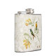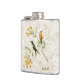 Deux colibris verts, un avec une gorge bleue et l'autre avec un coffre jaune lumineux, repos sur une vigne de trompette jaune-orange, sur un fond clair de texture de marbre d'or.