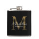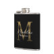 Simple Chic Script Metallic Black Gold Monogram Flask