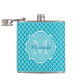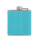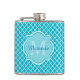 Ajoutez un vibe moderne sophistiqué à votre style personnel avec ces turquoise à la mode d'aqua et motif blanc de quatrefoil 6 onces. flacon avec un monogramme encadré élégant. Personnalisez cette conception élégante en ajoutant votre initiale nommée et décorée d'un monogramme.