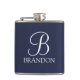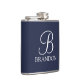 Flasques Monogramme et nom de script personnalisé bleu mari