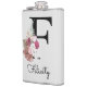 Flasque initiale moderne rose Boho, cadeau parfait pour une soirée de bachelorette ou autre célébration amusante et féminine. Personnalisé avec le monogramme de la lettre F et un nom.