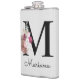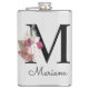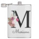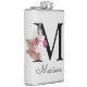 Monogramme initiale M Rose Boho Floral flacon initial, cadeau idéal pour une soirée de bachelorette ou autre célébration de filles amusante. Personnalisé avec le monogramme de la lettre M et un nom.
