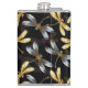 Motif sans couture avec or, bijoux, libellules brillantes avec ailes détaillées et pétillantes sur arrière - plan noir. libellule d'or.