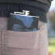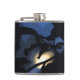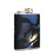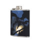 Une pleine lune jaune qui brille à travers les branches noires des arbres forme un motif abstrait intéressant contre un ciel bleu profond sur cette magnifique fiole de hanche. L'image est répétée à l'arrière. Ajout éffrayant à un événement Halloween !