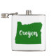 Silhouette de l'état de l'Oregon en vert avec superposition de texte de script moderne blanc