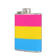 Vinyl flask with the pansexuality pride flag. Pink, yellow, and blue flag of the pan pride movement