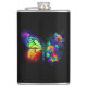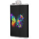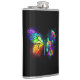 Arc en ciel, papillon monarque lumineux, artistiquement peint avec bouquet de roses irisés, lumineux, lumineux sur arrière - plan noir. Papillon arc-en-ciel.