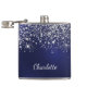 Flasques Poussière de paillettes argentées bleues nom écrit
