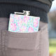 Joli Hip Flask, avec un motif de roses vives sur un arrière - plan bleu ciel, parsemé de petits papillons blancs. Faisant partie de la collection Posh & Painterly 'Summer Days', ce motif peut être ajusté pour s'adapter à n'importe quel flacon de hanche.