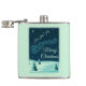 Un ballon avec une illustration vintage de Père Noël dans son traîneau tiré par ses rennes. De petites étoiles arrosent le ciel nocturne. Des pins couverts de neige au sol. Vintage esprit rétro.