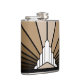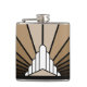 Un motif classique de style art déco. Un motif emblématique du soleil se levant derrière un bâtiment en forme d'art déco stylisé. Un design simple mais élégant, fidèle à l'époque.