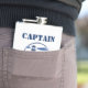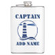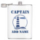 Votre nom ou texte personnalisé sur une fiole de capitaine personnalisée avec un phare nautique en bleu et blanc marine.