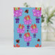 Drummonts Phlox und Texas Paintbrush blühen in kräftig bogengebundenen Bouquets, während Ladybugs vorbeiflattern. Ein bezaubernder, skurriler Ausdruck, der speziell für Dankeschön-Karten entworfen wurde und in aquamarinen, jade- und Himmelshintergründen angeboten wird, um Ihre fröhliche Botschaft zu vermitteln.