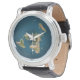 Uhr, Vintage Männeruhr mit schwarzem Lederarmband