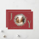 Mit dieser eleganten Joy Weihnachtskarte mit knalligem, rotem Hintergrund und festlichem Grün- und Rotweinblättern, die Ihr Foto prägen, senden Sie Ihren Urlaubswünschen ein. Die Buchstaben "J" und "Y" sind in Salbei grün geschrieben und fügen dem Design eine fröhliche Touch hinzu. Das "O" beherbergt das Foto der Familie im Kranz. Die Karte ist mit Ihren Familiendetails anpassbar und enthält die perfekte Weihnachtsbotschaft im Inneren, was es zu einer nachdenklichen und persönlichen Art macht, die Saison zu feiern.